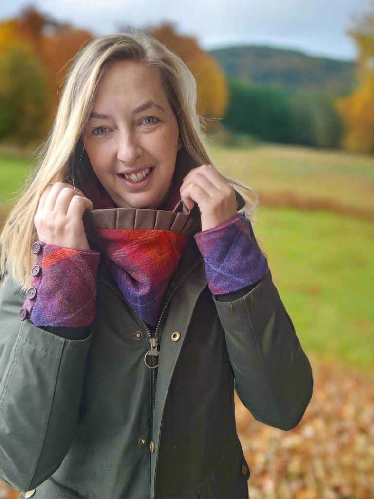 Handmade by Sarah in the heart of a Yorkshire village she creates a range of unique accessories that can be purchased to compliment this beautiful Jessica Tweed Snood.